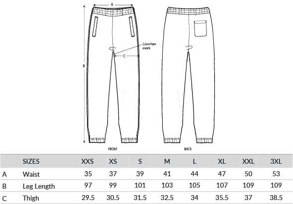 Self-fabric elasticated waistband and leg cuff opening. Flat drawcords in matching body colour with end folded for clean finish. Drawcord placement at inside waistband. Embroidered eyelets. Front welt pockets. Patch pocket at back. Side seam and leg cuff with double needle topstitch. GOTS certified, OEKO-TEX certified, Vegan certified, Fairwear.
